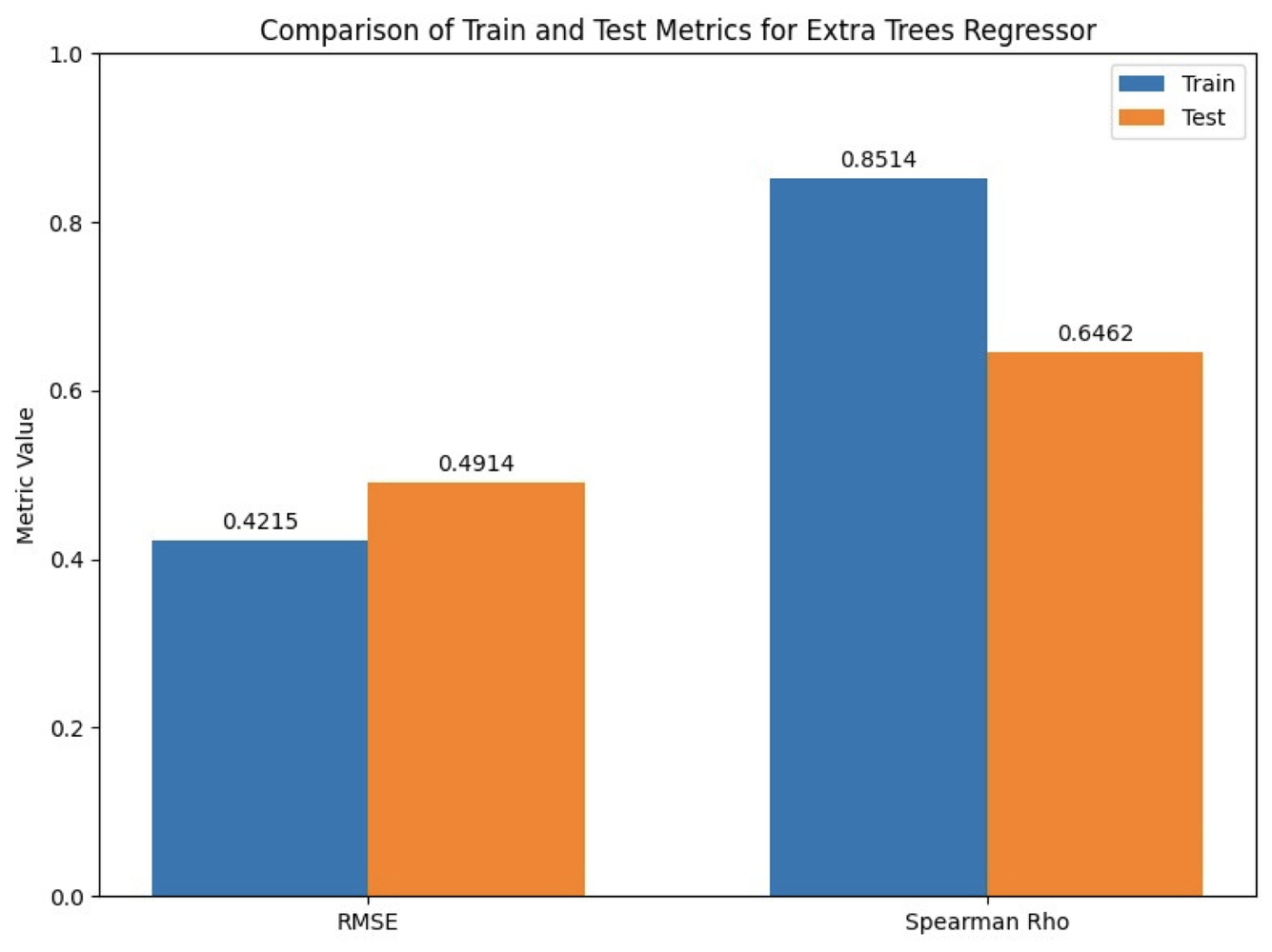 During the course of this project we tried multiple approaches to find the best performing, optimized model, evaluated on the metrics : Root Mean Squared Error and Spearman's Coefficient.